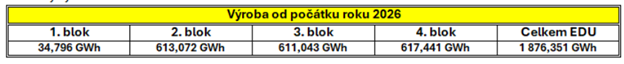20. 2. 2026. První blok je v provozu. Druhý blok je v plánované odstávce pro výměnu