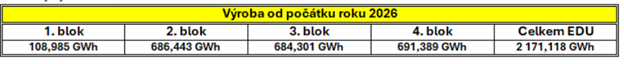 První je v provozu. Druhý blok je v plánované odstávce pro výměnu paliva. Pomocné systémy